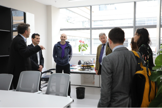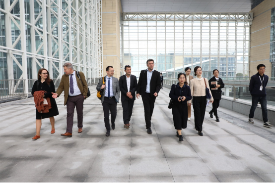 The delegation also visited the sports facilities, research areas, residential clusters, and the library to gain a comprehensive understanding of the architectural design philosophy and strategic developmental blueprint of Beihang Hangzhou International Campus, while having a detailed discussions with the foreign faculty members.