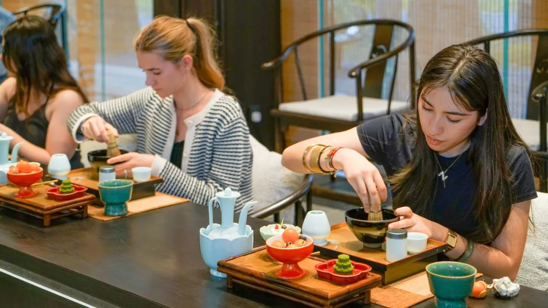 △ During the “Meng Shan Jing” tea ceremony experience activity in Jingshan Tea Culture Park, French students personally savored the delicacy and charm of traditional Chinese tea art