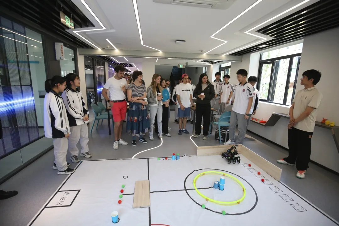 △ During their visit to Pingyao Middle School, French students shared and discussed their insights on drone design, programming, and application with their Chinese counterparts