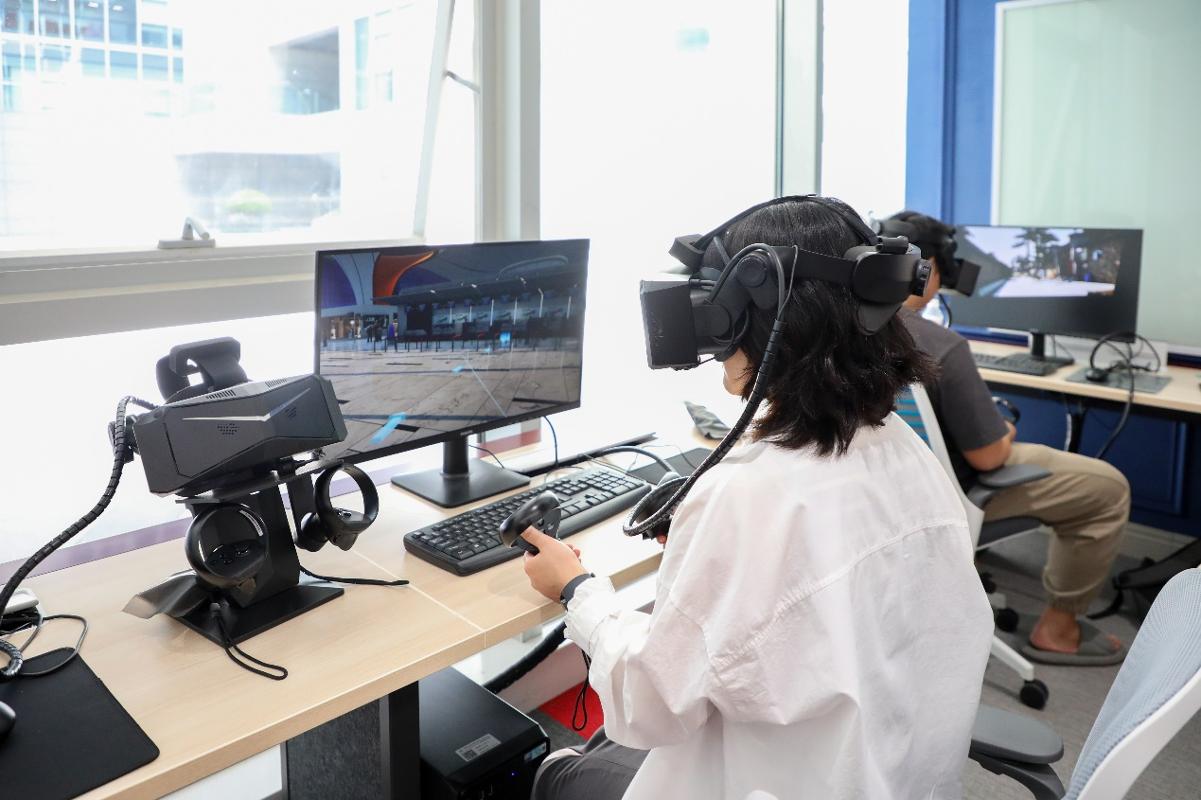 The students put on all-black, semi-enclosed VR headsets and greeted the “French staff” at the virtual airport. Next, they need to complete more than ten tasks, such as French check-in, baggage checking, and flight number confirmation, using the control joystick and voice Q&A. In case of any pronunciation errors during the process, the “French staff,” who are waiting with smiles, will refuse to hand over the boarding pass until the students meet the required standard. A student exclaimed after his first trial on site: “It is so realistic, as if I’m there in person. It provides a wide range of everyday scenes, similar to a native language environment, where you can talk with the staff. It feels like you are communicating with local people in France. It is a good device for practicing spoken French.”